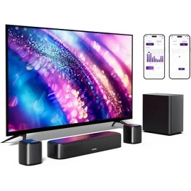 • 7.1ch Virtual Surround Sound System for TV: This 7.1ch sound bar includes 3 main channels for clear dialogue and 4 surround sound speakers for a virtual surround sound field. SurroundX technology delivers precise audio with 99.99% detail accuracy. AI optimizes sound for lifelike audio, coordinating speakers to simulate accurate sound movement, enhancing your home theater experience.